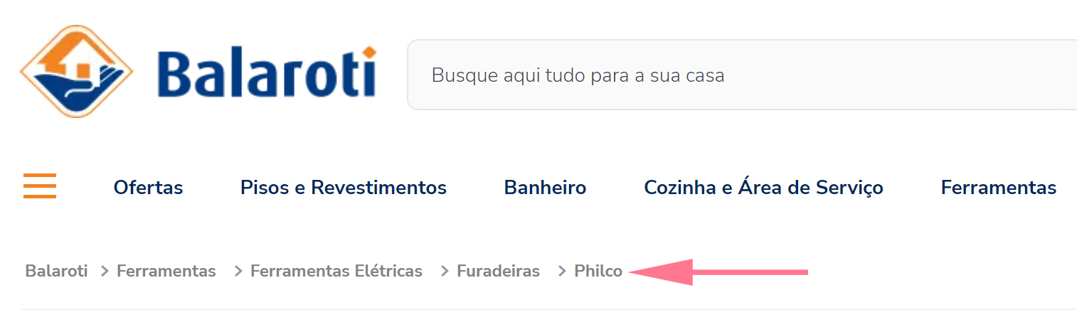 Por exemplo: a Balaroti coloca os deles diretamente abaixo da navegação principal e da barra de pesquisa: